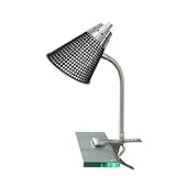 Compact fluorescent bulb saves energy and moneyMetal base clips to desk or table surfaceGooseneck arm bends to project light where you need itDouble plastic shade has attractive cutout design