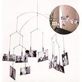 Photo MobileThis ingenious mobile allows you to create your own unique work of hanging art! Simply clip your photos onto the ends of each wire using the pre-attached clips. The entire mobile comes assembled and ready to decorate! Let your imagination go- you can clip just about anything that is lightweight onto this mobile (such as decorative papersleavesand small ornaments) to create your own design. Made of light stainless steel. To give an idea of scalethe two largest wires on the mobile measure approximately 12 inches long.